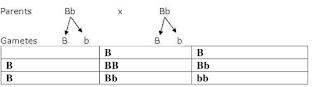 (b) Predict the genotype and phenotype of the offspring when both parents are ‘Bb' or have heterozygous black fur.Ans :