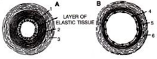 Ans : (a) A is artery, B is vein. (b) 1- Endothelium of the artery,