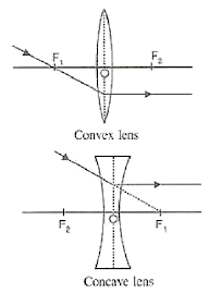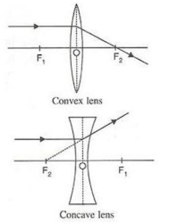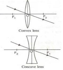 (iii) A ray of light passing through the first focus F1 (in a convex lens) or directed towards the first focus F1 (in a concave lens), emerges parallel to the principal axis after refraction.