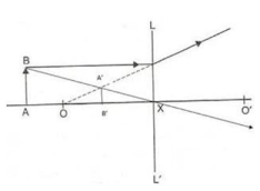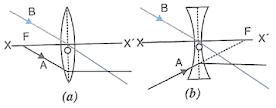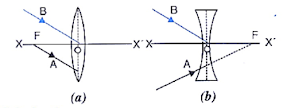 - Qstn #2In the diagram below, XX' represents the principal axis, O the optical centre and F the focus of the lens. Complete the path of rays A and B as they emerge out of the lens.