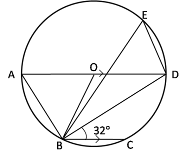 Therefore `` \angle OBD = 32° `` (angles opposite to equal side of the triangle are equal)