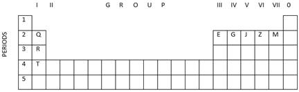 (d) Only element T is placed in the 4th period; hence, its electrons are arranged in four shells.