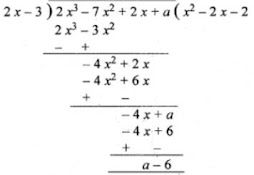 6. Using remainder theorem, find the value of a if the division of x3 + 5x2 - ax + 6 by (x - 1) leaves the remainder 2a.