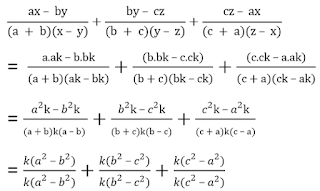 (by + cz)/(b2 + c2) = (cz + ax)/(c2 + a2) = (ax + by)/(a2 + b2)