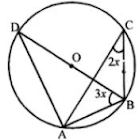 If O is the center of the circle, find the value of x in each of the following figures (using the given information):