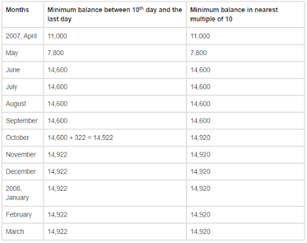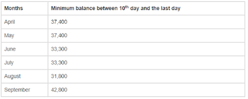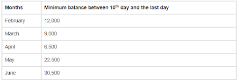 Minimum balance between 10th day and the last day is mentioned in the table.