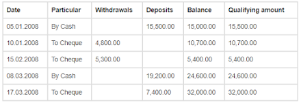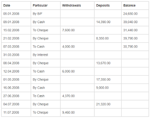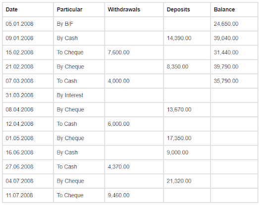 8. Mr. Punjwanis saving account passbook had the following entries, The bank pays interest at 4.5% on all SB accounts. Find the amount received by Mr. Punjwani when he closed the account on 25thJuly 08.