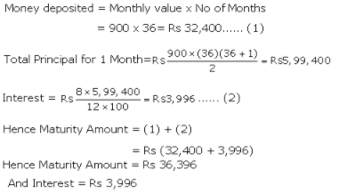 Given that Recurring deposit per month = Rs 900, Period = 3 years = 36 months,