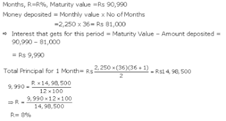 3. Mr. Patel deposits Rs 2,250 per month in a recurring deposit account for a period of 3 years. At the time of maturity, he gets Rs 90,990.