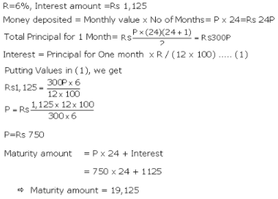 5. Aarushi has a recurring deposit account for 2 years at 6% p.a. She receive Rs 1,125 as interest on maturity.