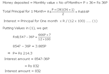 Interest amount = 8547 - (36 × 214.3) = ₹ 832