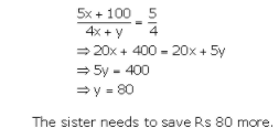 Let money saved by the boy and her sister be 5x and 4x and let the sister need to save Rs y more