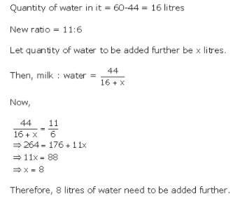Quantity of milk = 60 × 11/15 = 44 litres
