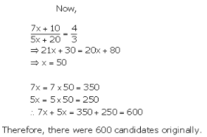 30. In an examination the ratio of the number of successful candidates to unsuccessful candidates is 7 : 5. Had 30 more appear and 10 more passed, the ratio of successful candidates to unsuccessful candidates would have been 4 : 3. Find the number of candidates who appeared in the examination originally.