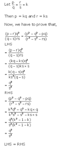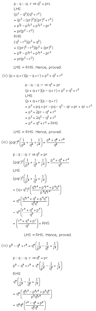 10. Given four quantities p, q, r and s are in proportion, show that q2(p - r): rs(q - s) = (p2 - r2 - pq) : (r2 - s2 - rs).