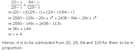13. Find the smallest number that must be subtracted from each of the number 20, 29, 84 and 129 so that they are in proportion.