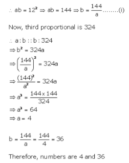 14. Find two numbers mean proportional is 12 and the third proportional is 324.