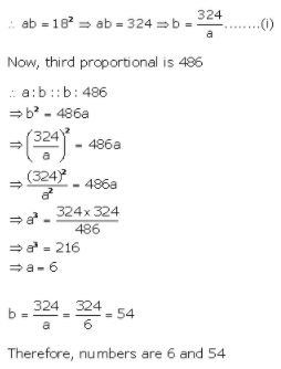15. Find two numbers whose mean proportional is 18 and the third proportional is 486.