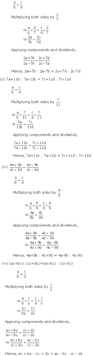(i) 2a + 7b : 2a - 7b = 2c + 7d : 2c - 7d
