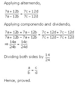 2. If (7a + 12b)/(7c + 12d) = (7a - 12b)/(7c - 12d), then prove that a/b = c/d.