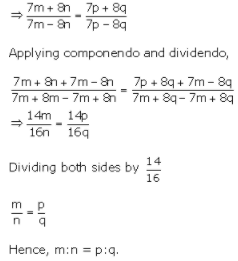 3. If (7m + 8n)(7p - 8q) = (7m - 8n)(7p + 8q), then prove that m : n = p : q