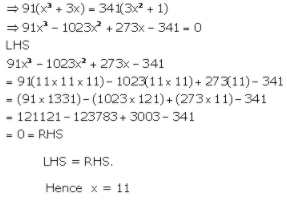 15. Show that the value of x is 11, when (x3 + 3x)/(3x2 + 1) = 341/91