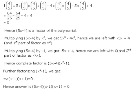 If 5x - 4 is assumed to be factor, then x = 4/5, Substituting this in problem polynomial, we get: