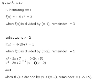 21. A polynomial f(x) when divided by (x - 1) leaves a remainder 3 and when divided by (x - 2) leaves a remainder of 1. Show that when its divided by (x - 1)(x - 2), the remainder is (- 2x + 5).