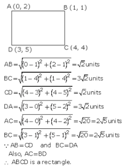 32. Prove that the points (0, 2), (1, 1), (4, 4) and (3, 5) are the vertices of a rectangle.