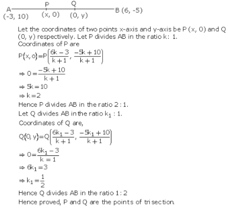 22. Show that he line segment joining the points (-3, 10) and (6, - 5) is trisected by the coordinates axis.