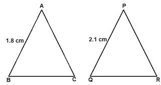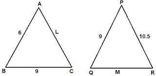 AB = 6 cm, BC = 9 cm, PQ = 9 cm and PR = 10.5 cm
