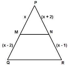 From the question it is given that, PM = x, MQ = (x - 2) and NR = (x - 1)