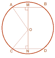 13. In a circle with centre O, chords AB and CD intersect inside the circle at E. Prove that