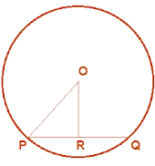 From the figure we can say that, PR = RQBecause, perpendicular from center to a chord bisects the chord.