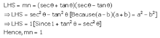 5. If sec θ + tan θ, sec θ - tan θ = n, prove that mn = 1