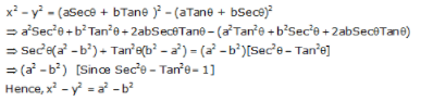 = a2 sec2 θ + b2 tan2 θ + 2 ab sec θ tan θ - (a2 tan2 θ + b2 sec2 θ + 2ab sec θ tan θ)