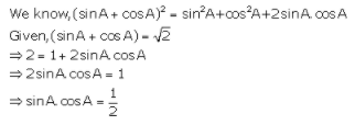 If sin A + cos A = √2, prove that sin A cos A = ½