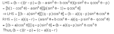 If a sin2θ + b cos2θ = c and p sin2 θ + q cos2 θ = r, prove that (b - c)(r - p) = (c - a)(q - r).