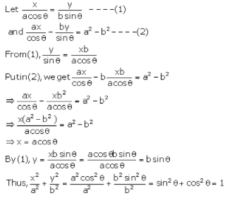 θ) = y/(b sin θ) and ax/(cos θ) - by/(sin θ) = a2 - b2, prove that x2/a2 + y2/b2 = 1