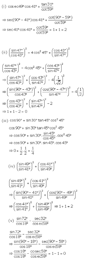 (iv) {(sin 49°)/(sin 41°)}2 + {(cos 41°)/(sin 49°)}2
