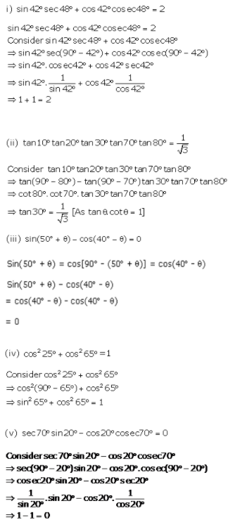 (i) sin 42° sec 48° + cos 42° cosec 48° = 2