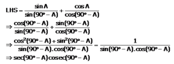 3. Prove that sin A/(sin 90° - A) + cos A/(cos 90° - A) = {sec (90° - A)cosec (90° - A)}