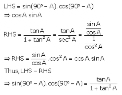5. Prove that sin (90° - A). cos (90° - A) = tan A/(1 + tan2 A)