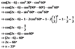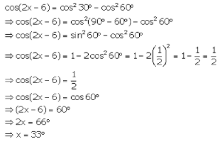 7. Find x, if cos (2x - 6) = cos2 30° cos2 60°