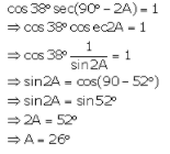 8. Given cos 38° sec(90° - 2A)= 1, find the value of