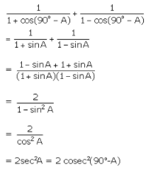 9. Prove that {1/(1 + cos (90° - A)} + {1/(1 - cos (90° - A)} = 2 cosec2 (90° - A)