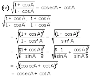 (xi) (1 + sin A)/(1 - sin A) = (cosec A + 1)/(cosec A - 1)