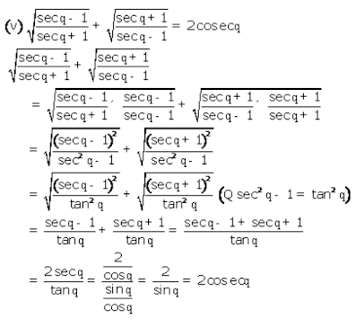 (x) (sec A - 1)/(sec A + 1) = (1 - cos A)/(1 + cos A)