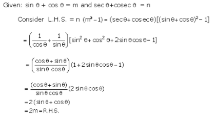 3. If sin A + cos A = m and sec A + cosec A = n, prove that n(m2 - 1) = 2m.