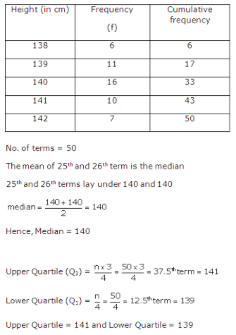 Heights (in cm) | 138 | 139 | 140 | 141 | 142 |
